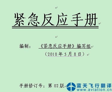 近日,承接老客戶航空公司(某國有大型航空公司)的《緊急反應(yīng)手冊》(Emergency Response Manual)(ERM)中翻英翻譯任務(wù),公司積極組織譯員,調(diào)取相應(yīng)資料庫,保證質(zhì)量,爭取客戶滿意。