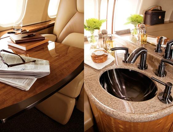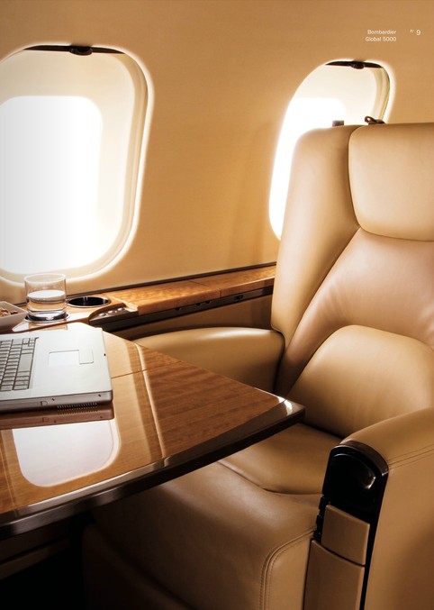 Interior Highlights 客艙要點(diǎn) The sophisticated cabin of the Bombardier Global 5000 aircraft (龐巴迪環(huán)球5000公務(wù)機(jī)) provides passengers with more high-comfort living and working area than any other super-large business jet. Its quiet, airy atmosphere is highly conducive to relaxed productivity. Equipped with one of the world's most advanced, most reliable Cabin Electronic Systems, the aircraft offers business travelers the same high-caliber, high-speed connectivity capabilities and office options they enjoy on the ground, plus on-demand news/weather/sports packages as well as a theatre of entertainment choices.