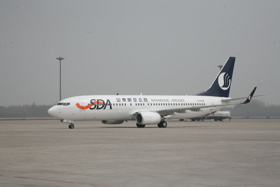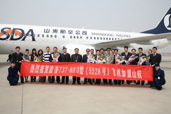 山航集團黨委書記張幸福等公司領(lǐng)導前往機場迎接并與接機小組合影