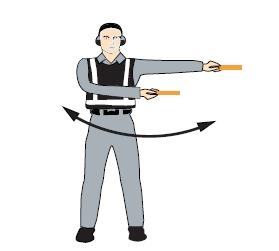 雙臂水平外伸,掌心朝下,向下招手,雙臂移動(dòng)速度表示上升率大小 向下移動(dòng)(下降高度) 一臂水平指向右側(cè), 另一臂反復(fù)向所指方向揮動(dòng),示意直升機(jī)應(yīng)向左移動(dòng)(轉(zhuǎn)向)向左移動(dòng)(轉(zhuǎn)向) 一臂水平指向左側(cè), 另一臂反復(fù)向所指方向揮動(dòng),示意直升機(jī)應(yīng)向右移動(dòng)(轉(zhuǎn)向)向右移動(dòng)(轉(zhuǎn)向)