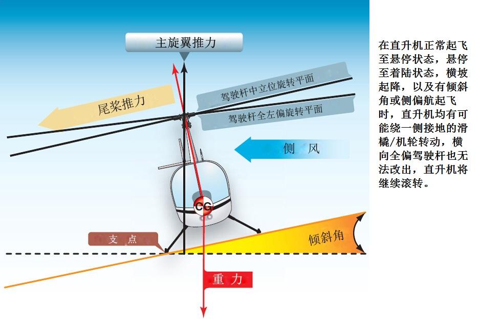 To view this page ensure that Adobe Flash Player version 9.0.124 or greater is installed. 4.3.2 相關(guān)研究一般來(lái)說(shuō),無(wú)論地面是否平整,直升機(jī)駕駛員均應(yīng)嫻熟操作。如果直升機(jī)在正常起飛著陸與斜坡起飛著陸的情況下均使用相同的傾斜角(直升機(jī)與水平面的夾角),或者滑橇/ 機(jī)輪位于地面時(shí)直升機(jī)出現(xiàn)漂移,那么該傾斜角或漂移會(huì)使直升機(jī)繞仍然接地的滑橇/機(jī)輪轉(zhuǎn)動(dòng)。當(dāng)這種情況發(fā)生時(shí),相比懸停的直升機(jī)而言,橫向操縱駕駛桿的反應(yīng)速度會(huì)更加緩慢,且效果較差。如果允許滾轉(zhuǎn)速率繼續(xù)增大,那么傾斜角將達(dá)到臨界值,即使全量橫向操縱駕駛桿也不能將滾轉(zhuǎn)改出,直升機(jī)將發(fā)生側(cè)翻,引起重大事故。隨著滾轉(zhuǎn)速率增大, 仍有可能改出的角度越來(lái)越小。臨界滾轉(zhuǎn)角也相應(yīng)減小,臨界滾轉(zhuǎn)角在下列情況下會(huì)進(jìn)一步減。河覀(cè)滑橇/機(jī)輪接地、 左側(cè)風(fēng)、橫向重心靠右、主旋翼拉力幾乎等于直升機(jī)重量以及抵左腳蹬。 a)正常起飛和著陸如果在平整且堅(jiān)硬的地面起飛和著陸,一側(cè)滑橇/機(jī)輪 位于地面,且升力約等于直升機(jī)總重,駕駛員應(yīng)謹(jǐn)慎操縱不要發(fā)生水平位移。駕駛員應(yīng)該平穩(wěn)操作并注意駕駛桿配平(利用配平裝置),從而保證俯仰或滾轉(zhuǎn)速率不會(huì)增加,尤其是滾轉(zhuǎn)率增加。如果傾斜角開(kāi)始增加至約5-8°,同時(shí)全偏駕駛桿不能對(duì)角度進(jìn)行修正時(shí),駕駛員應(yīng)減小總距以消除不穩(wěn)定的滾轉(zhuǎn)狀態(tài)。否則傾斜角會(huì)達(dá)到臨界值,將造成直升機(jī)側(cè)翻。(參見(jiàn)圖4) ![]() 圖4 直升機(jī)右滑橇/機(jī)輪接地時(shí)的各種作用力示意圖 b)斜坡起飛和著陸在斜坡上進(jìn)行起飛和著陸時(shí),駕駛員應(yīng)遵循已公布的操 ![]() 圖 5 向上坡方向滾轉(zhuǎn)動(dòng)作示意圖 如果直升機(jī)在斜坡上并向上坡方向滾轉(zhuǎn),修正時(shí)過(guò)快放下總距可能引起直升機(jī)快速向反方向滾轉(zhuǎn)。如果(著陸時(shí)) 上坡方向的滑橇/機(jī)輪撞地,會(huì)導(dǎo)致直升機(jī)上坡方向的滑橇/ 機(jī)輪彈起,并且慣性會(huì)造成直升機(jī)圍繞下坡方向接地點(diǎn)滾轉(zhuǎn)并翻轉(zhuǎn)至一側(cè)。駕駛員要避免突然增加總距使直升機(jī)離地, 因?yàn)檫@會(huì)產(chǎn)生一個(gè)很大而且突然的反方向滾轉(zhuǎn)力矩。這種運(yùn)動(dòng)可能是無(wú)法控制的。如果直升機(jī)在一側(cè)滑橇/機(jī)輪在地面的情況下形成滾轉(zhuǎn)速率,直升機(jī)就可能向一側(cè)翻轉(zhuǎn)。(參見(jiàn)圖 6) ![]() 圖 6 向下坡方向滾轉(zhuǎn)動(dòng)作示意圖 |