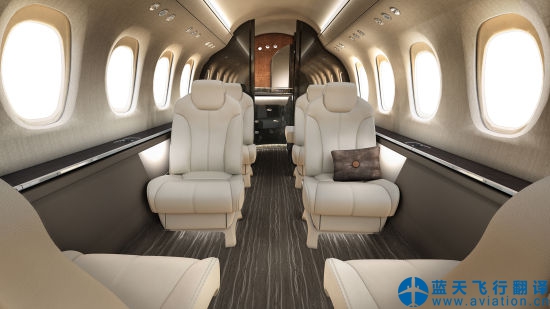 獎狀緯度可容納9名乘客,客艙的主座位區(qū)設(shè)有6個間距0.8米的豪華座椅,并采用側(cè)向雙人沙發(fā)的標(biāo)準(zhǔn)座位安排,為乘客提供了更加輕松愜意的額外空間。每個座椅都采用了符合人體工學(xué)的設(shè)計和頂級皮革,可水平旋轉(zhuǎn)180度,并能前后自后調(diào)節(jié)至完全放平。面對面的座椅還可以展開,合并成一張床供乘客旅途休憩。座椅邊10扇高17英寸、寬13英寸的超大舷窗則為乘客提供了絕佳的觀景視角。