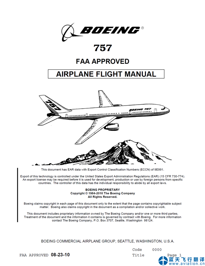 北京藍天飛行翻譯公司完成航空公司波音757飛機飛行手冊翻譯任務 Boeing 757 Airplane Flight Manual Translation