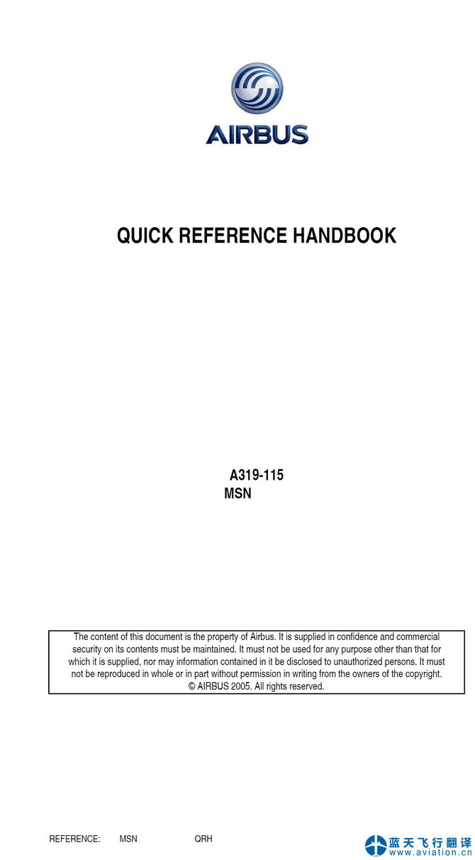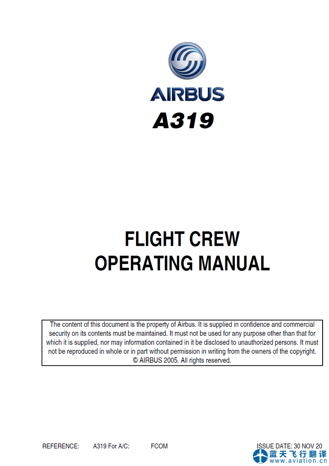 北京藍天飛行翻譯公司完成大型公務機公司的2020年11月30日版本空客公務機ACJ319飛行機組操作手冊(FCOM FLIGHT CREW OPERATING MANUAL)、ACJ319快速檢查單(QRH QUICK REFERENCE HANDBOOK)和ACJ319飛機飛行手冊(AIRPLANE FLIGHT MANUAL)翻譯任務 30 NOV 20 ACJ319 FLIGHT CREW OPERATING MANUAL, QRH QUICK REFERENCE HANDBOOK and AIRPLANE FLIGHT MANUAL Translation